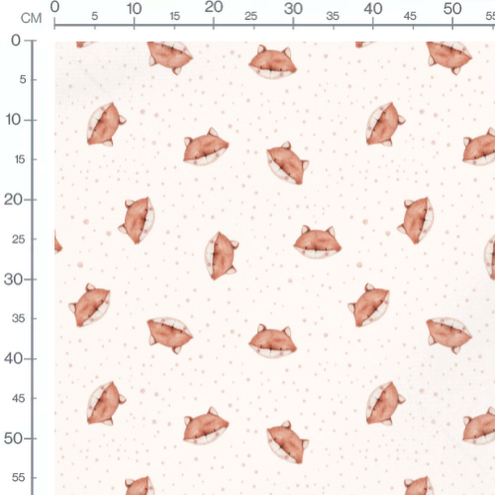 Les renards sont dessinés dans des tons marron clair. Le fond beige est parsemé de petits pois beige.Les tissus