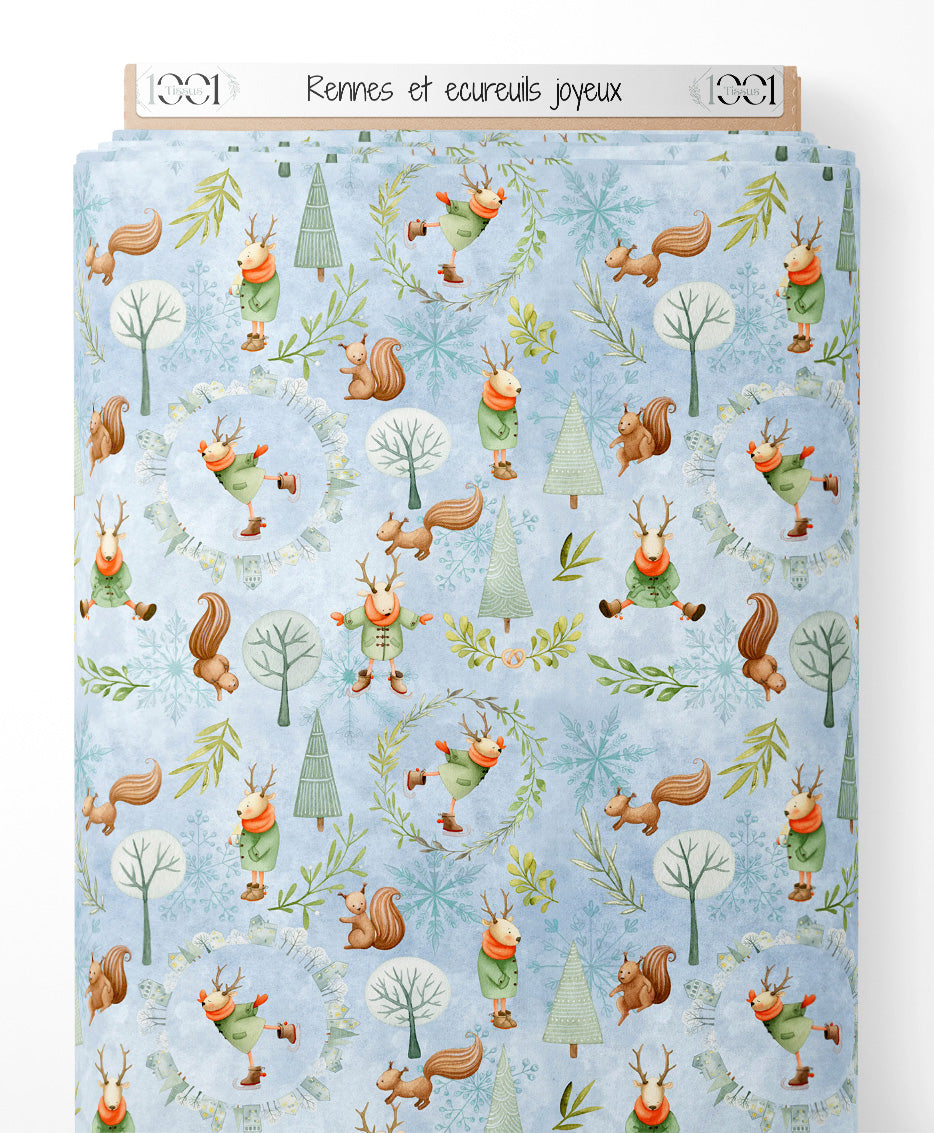 Tissu - Rennes et écureuils joyeux