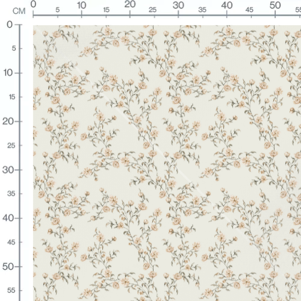 Les roses sont dessinées avec des détails fins et des nuances subtiles. Les feuilles vertes ajoutent une touche de contraste au motif. Le fond crème met en valeur la douceur des fleurs. Ce motif évoque un style classique et intemporel.Les tissus