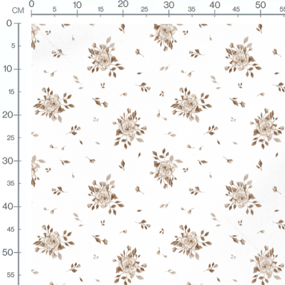 Tissu - Roses sépia sur blanc