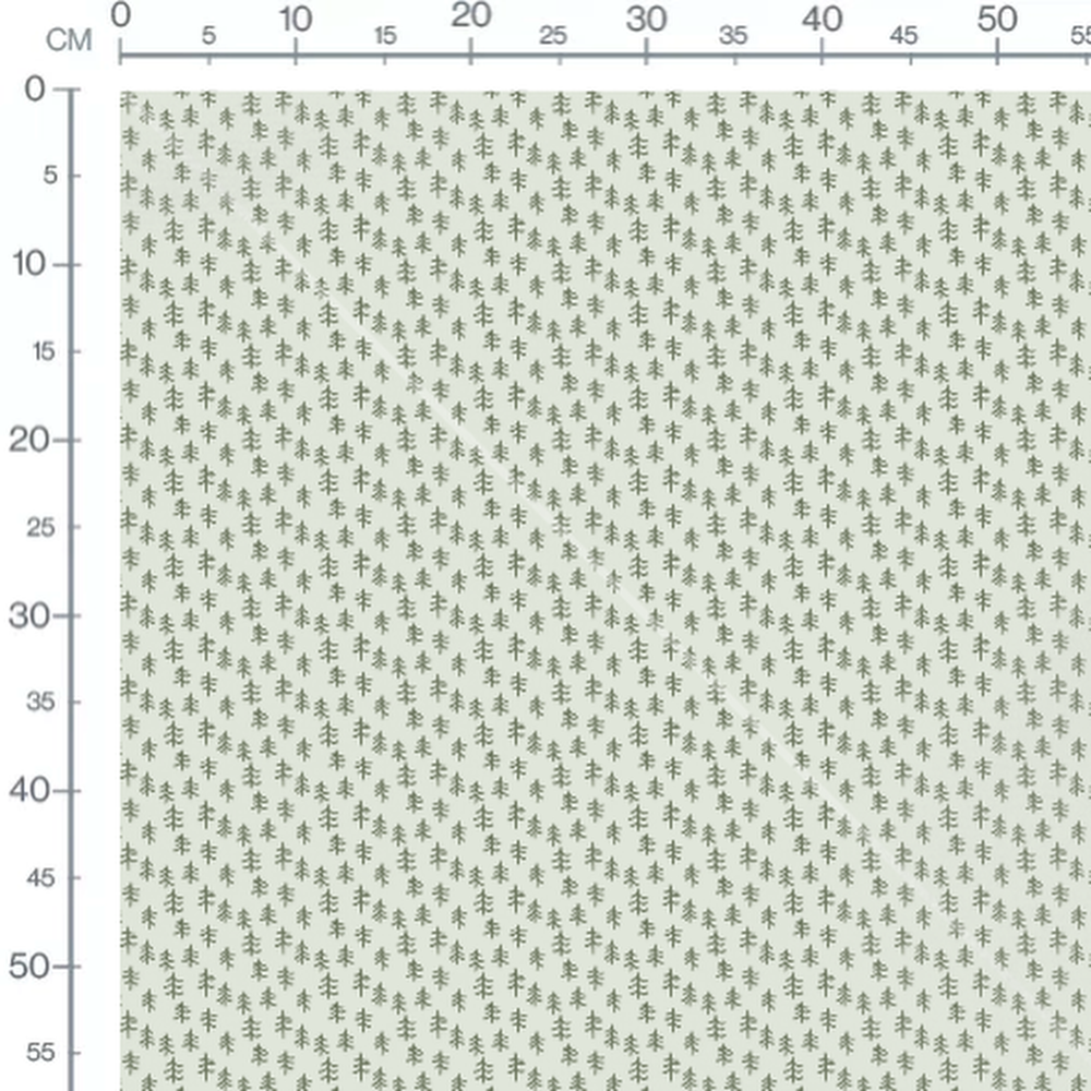 Les sapins sont dessinés de manière simple et épurée. Le fond clair met en valeur les silhouettes des arbres.Les tissus