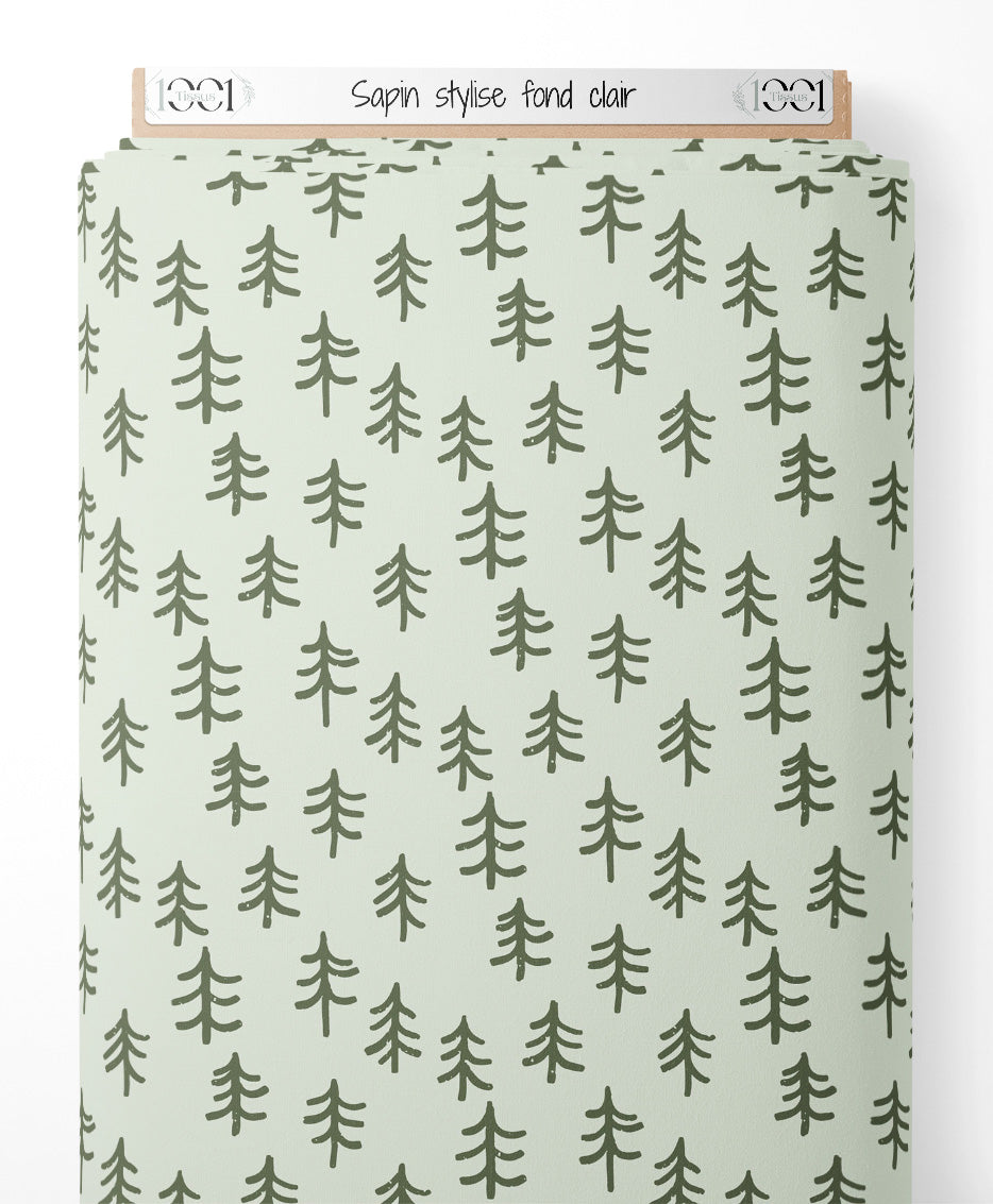Tissu - Sapin stylisé sur fond clair