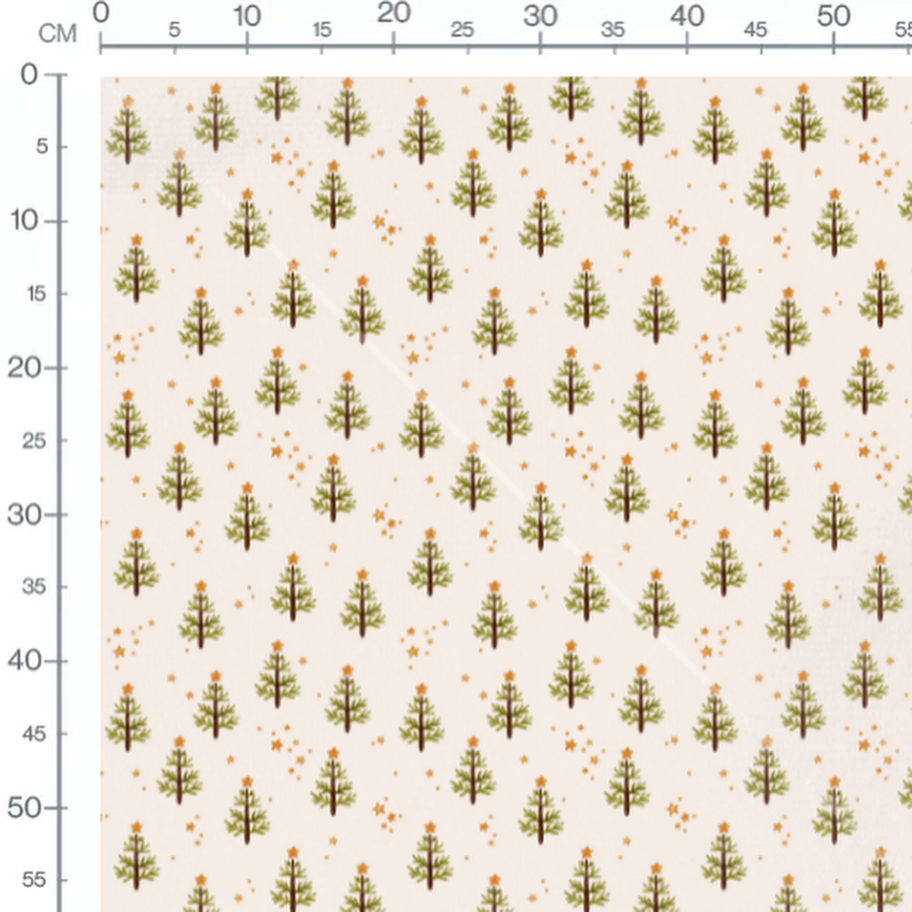 Les sapins sont ornés d'une étoile dorée au sommet. Les petites étoiles dorées ajoutent une touche festive au motif.Les tissus