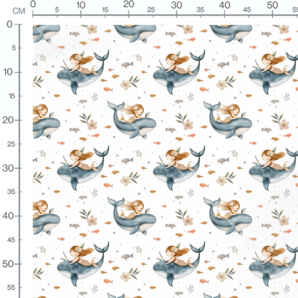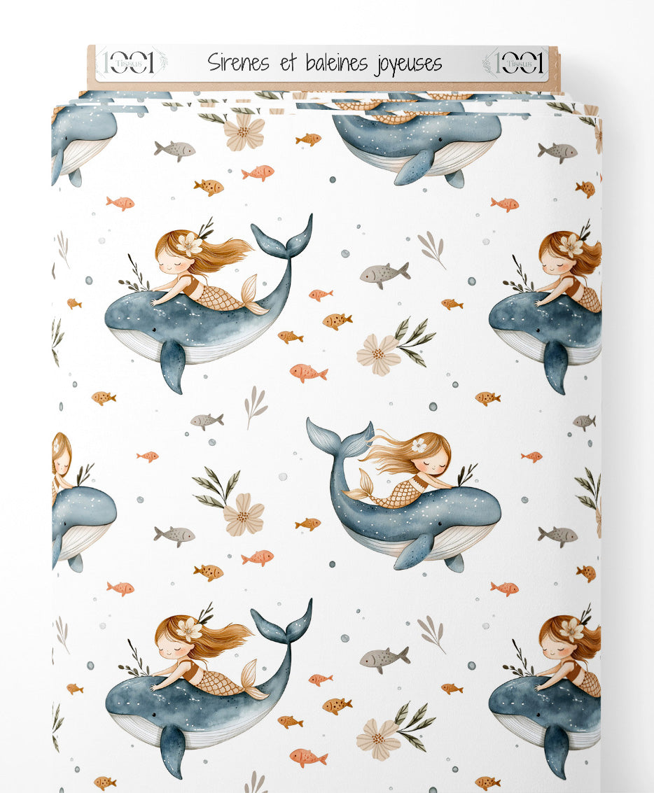 Tissu - Sirènes et baleines joyeuses