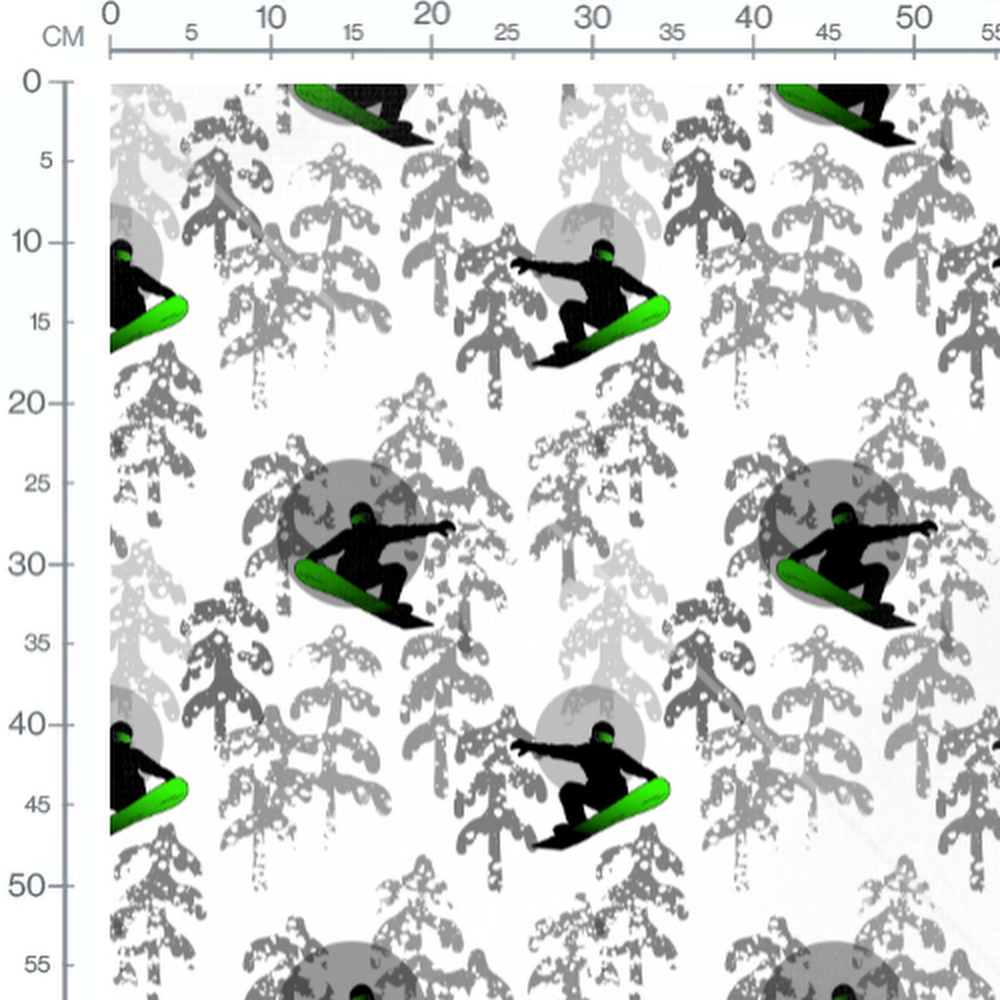 Tissu - Snowboarders et sapins gris