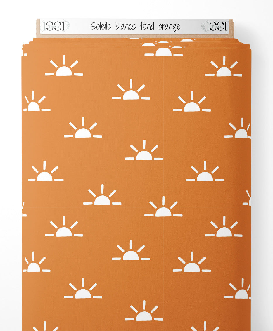 Tissu - Soleils blancs sur fond orange