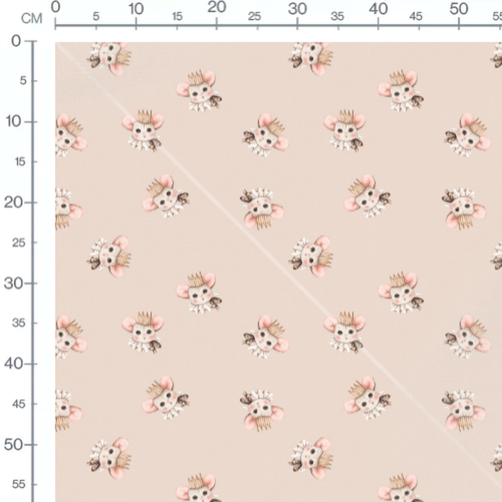 Les souris portent des couronnes dorées et des collerettes blanches. Le fond beige met en valeur les détails délicats des souris. Les oreilles des souris sont d'un rose doux.Les tissus