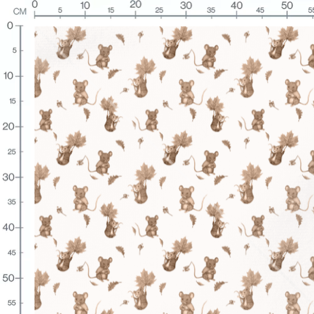 Les souris sont dessinées dans des teintes brunes douces. Les feuilles d'automne ajoutent une touche naturelle au motif. De petites baies complètent le design automnal.Les tissus
