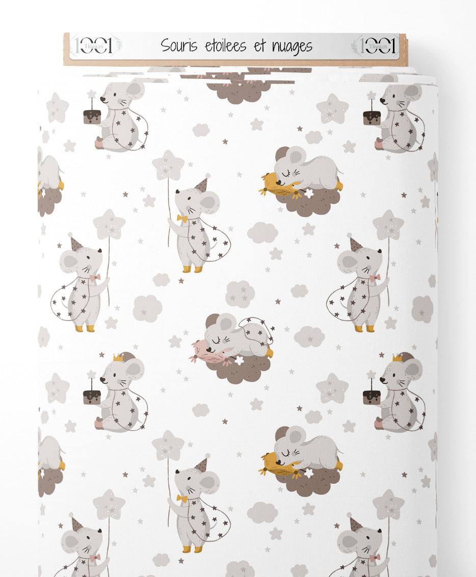 Tissu - Souris étoilées et nuages