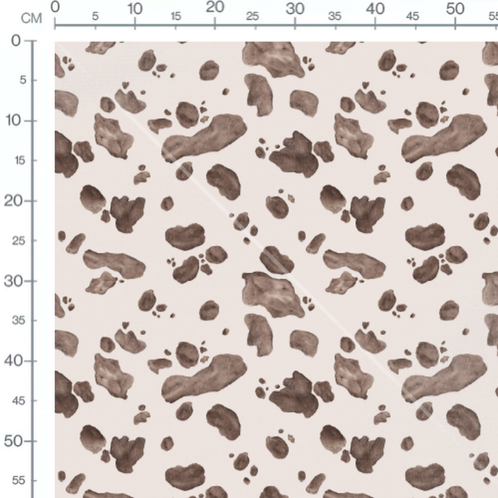 Les taches varient en taille et en forme, créant un effet naturel. Le fond beige met en valeur les nuances de marron des taches.Les tissus