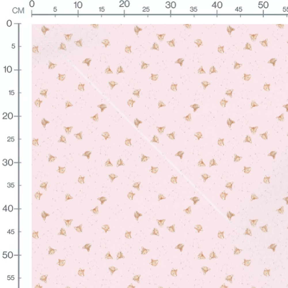 Les faons sont dessinés avec des détails simples et doux. Le fond rose clair ajoute une touche délicate. Les petits points noirs créent un effet de texture subtile.Les tissus