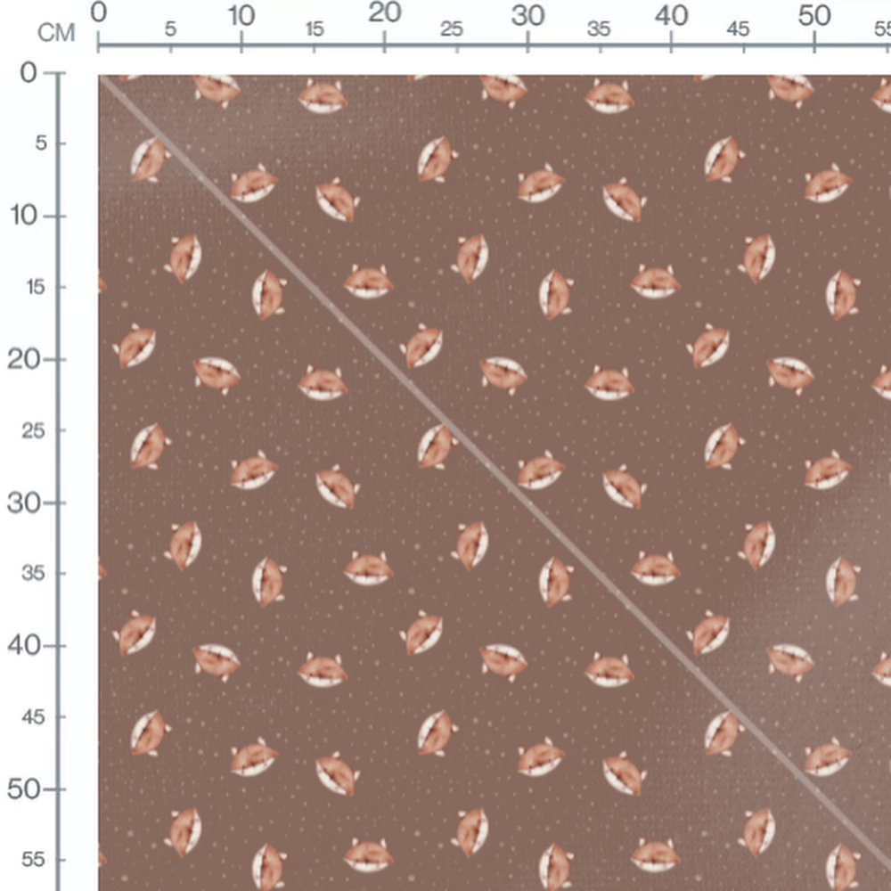 Les renards ont des oreilles pointues et des museaux blancs. Le fond brun est parsemé de petits points blancs irréguliers.Les tissus