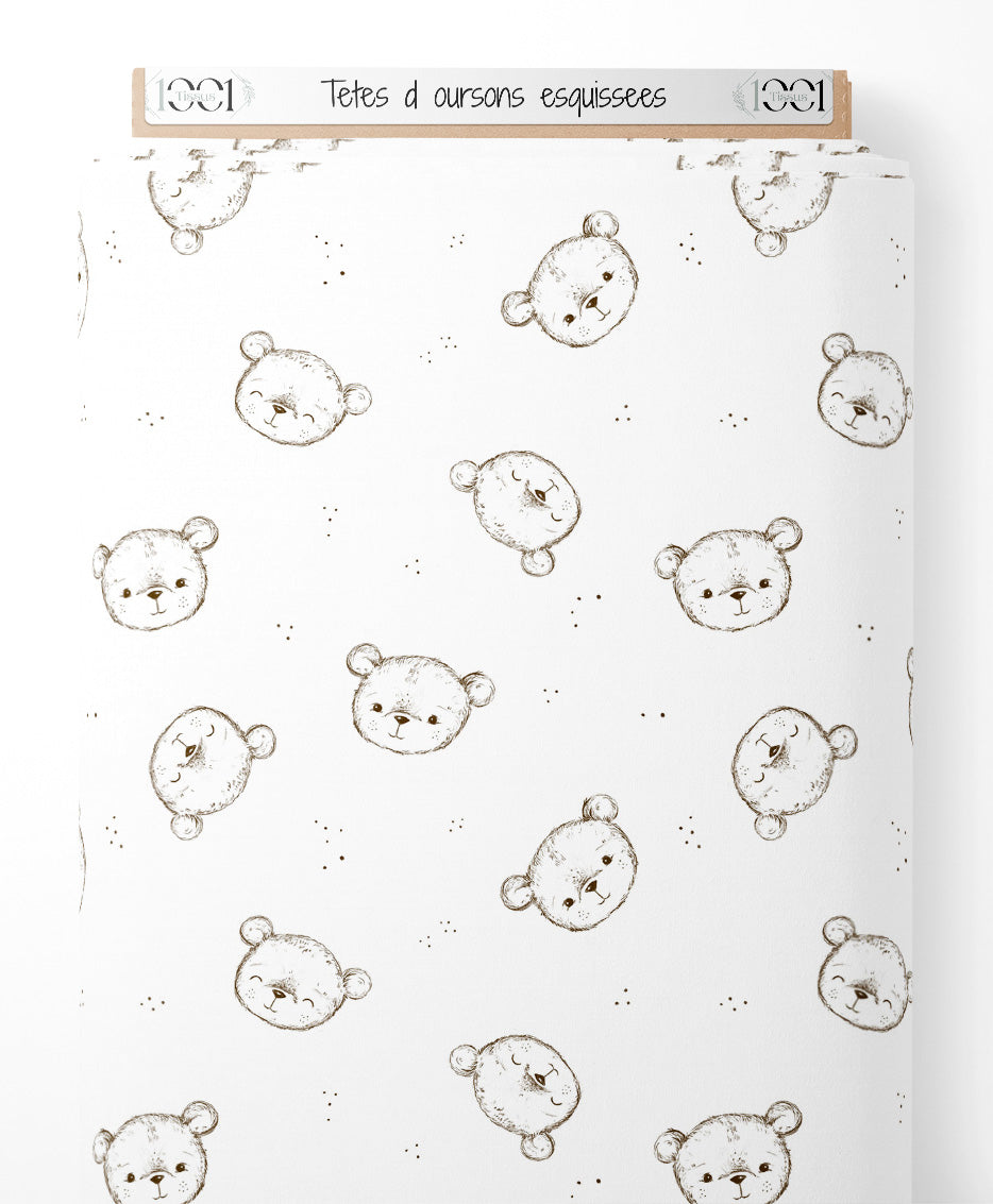Tissu - Têtes d'oursons esquissées