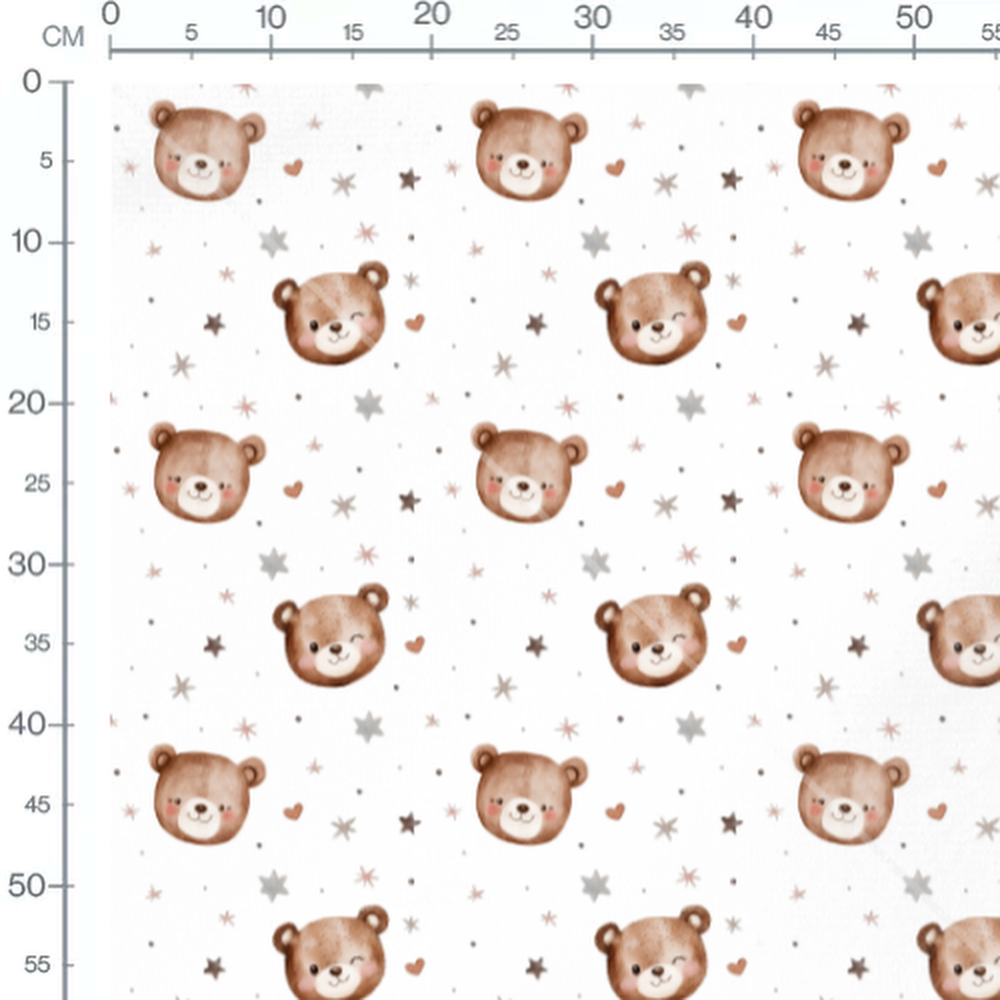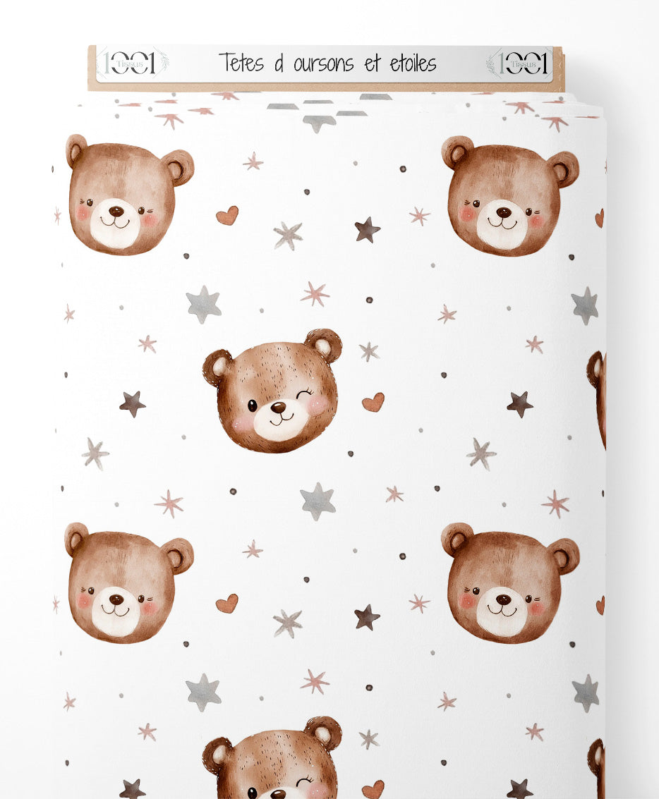 Les oursons ont des expressions adorables, l'un souriant et l'autre clignant de l'œil. Les étoiles et cœurs ajoutent une touche ludique au motif.Les tissus