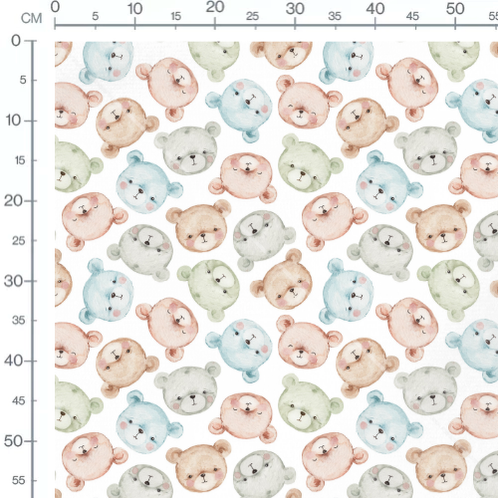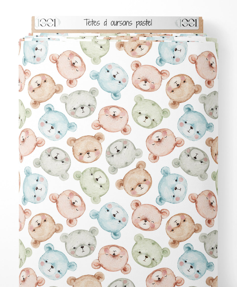 Les oursons ont des expressions souriantes et des joues roses. Chaque ourson est dessiné dans un style aquarelle doux.Les tissus
