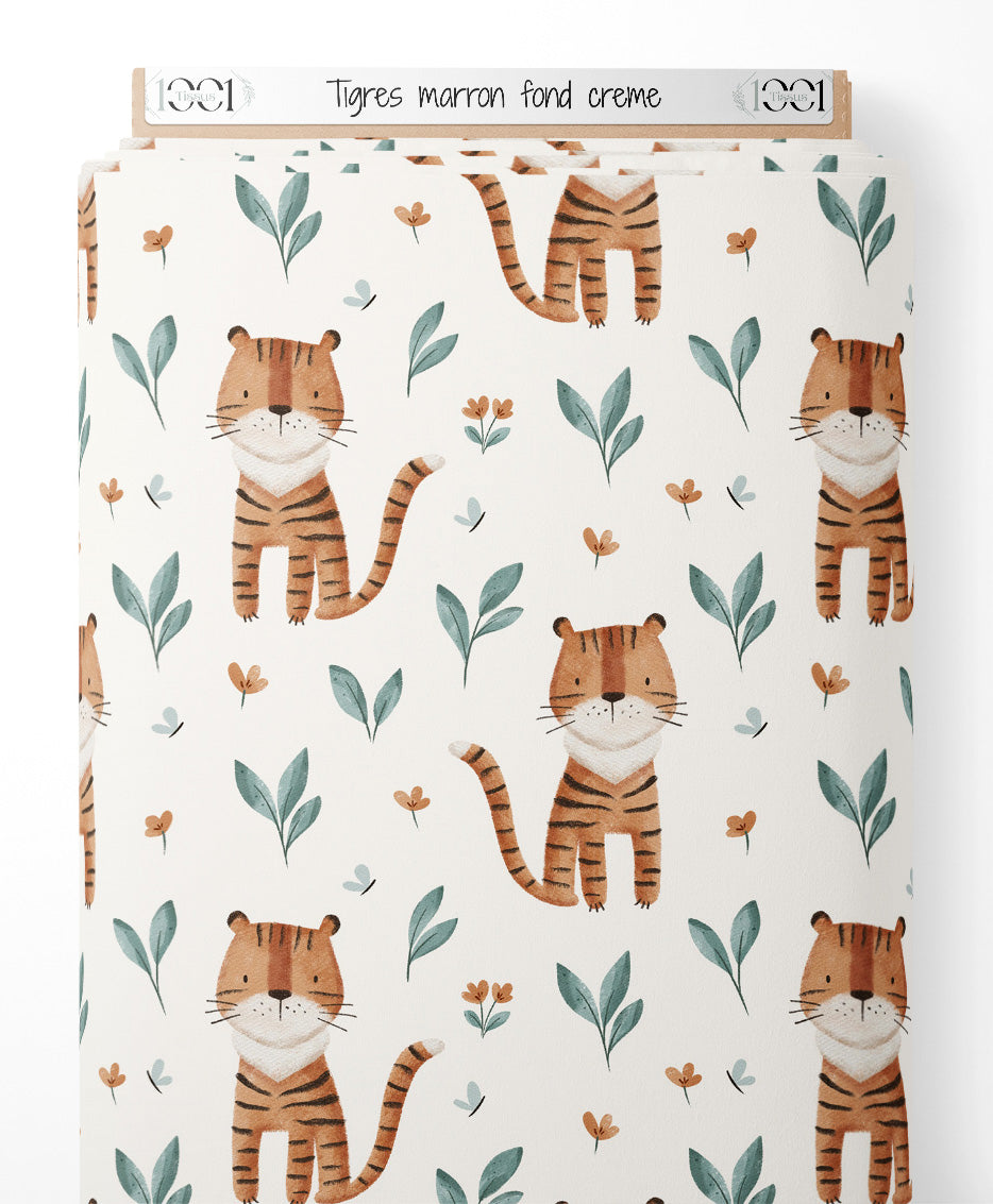 Tissu - Tigres marron sur fond crème