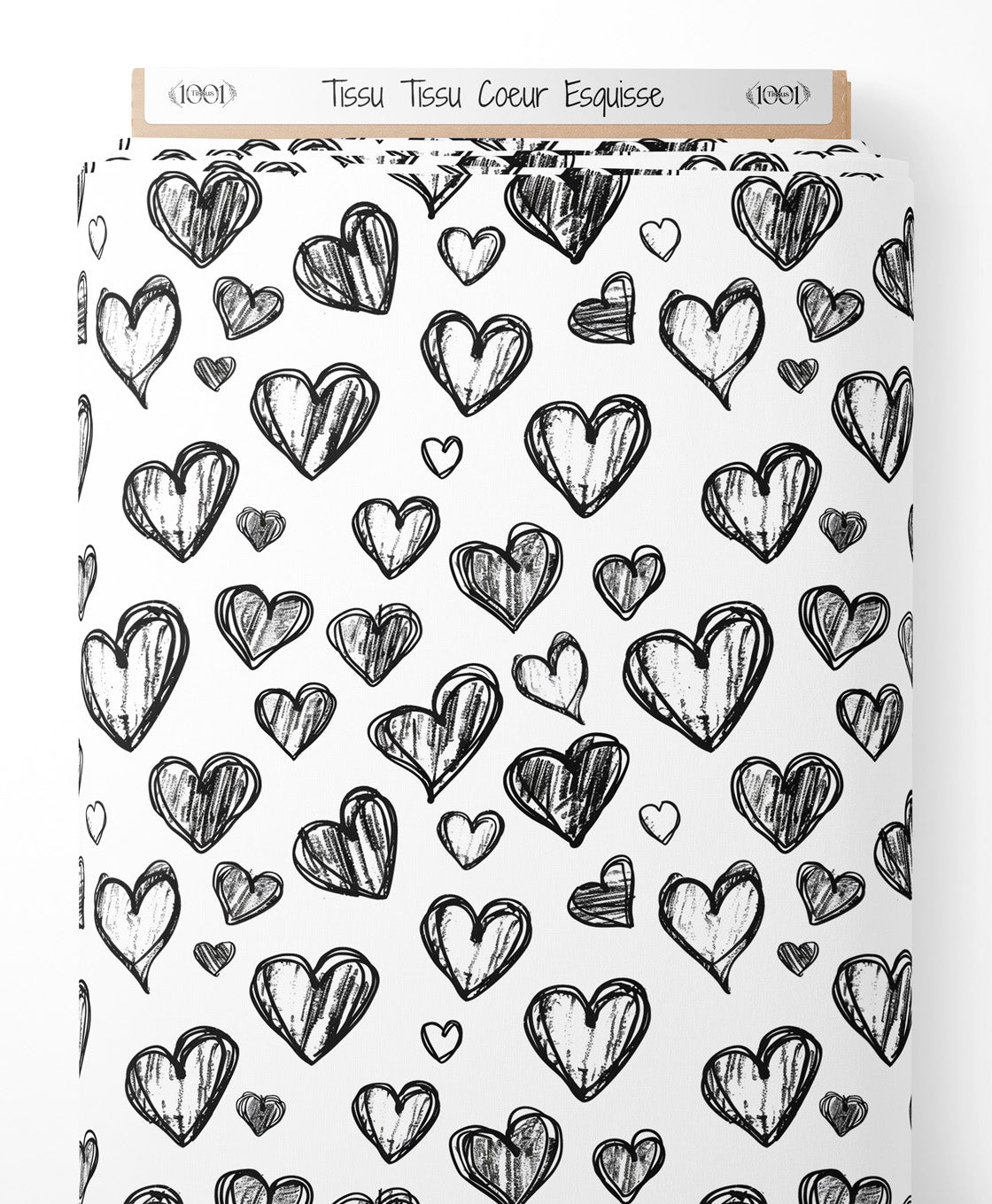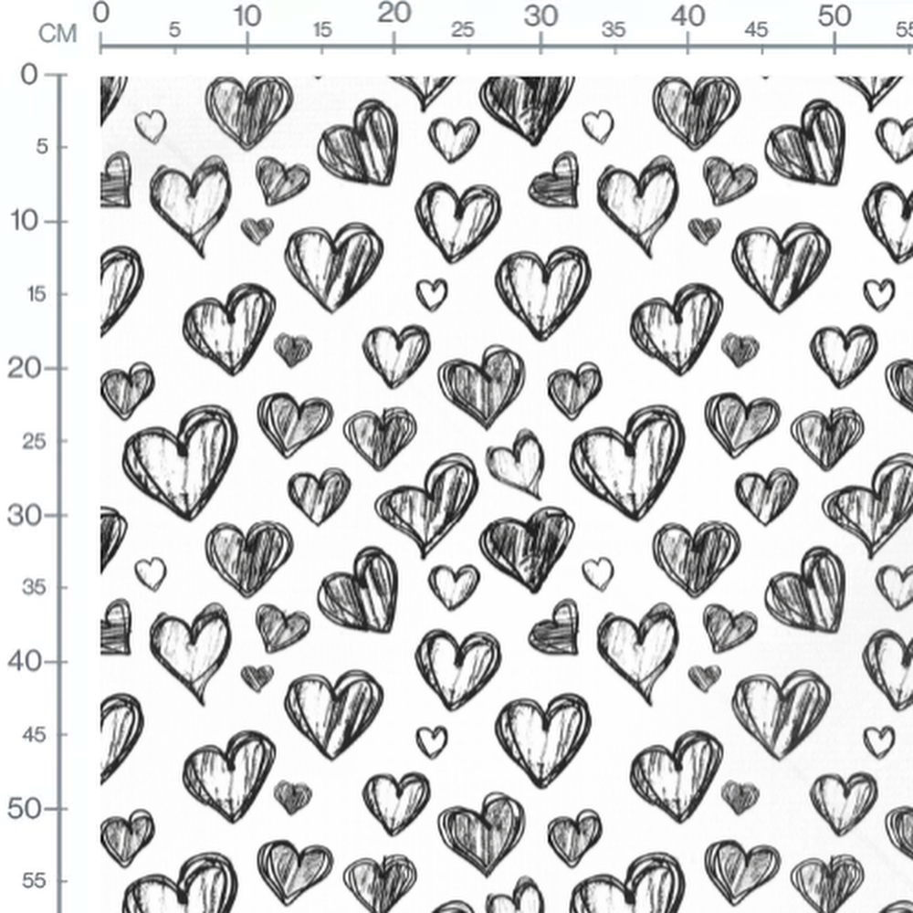 Cœurs esquissés noirs sur fond blanc. Les tissus