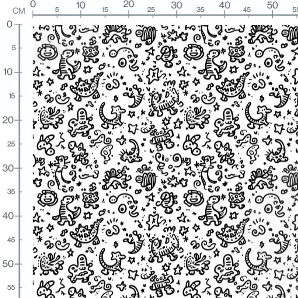 Dinosaures et étoiles noirs sur fond blanc. Les tissus