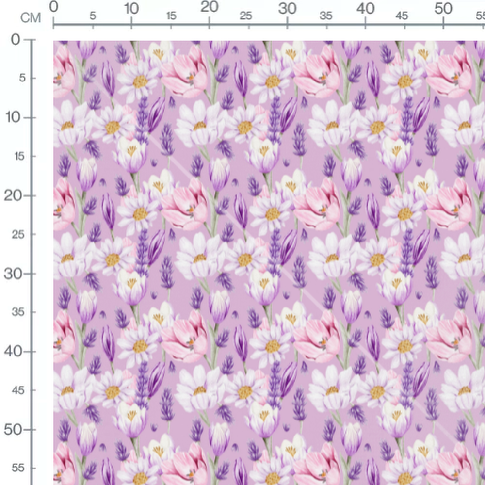 Tissu - Tulipes et lavande pastel