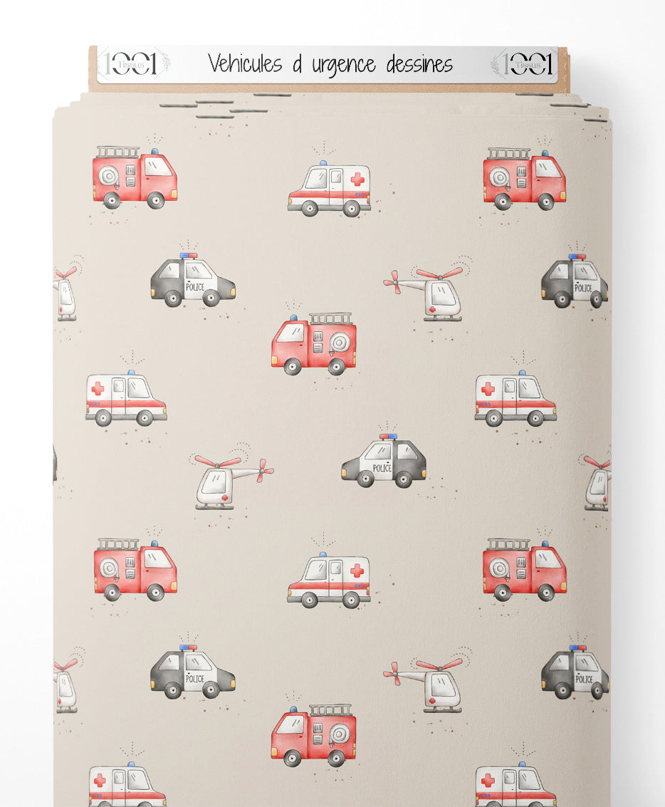 Tissu - Véhicules d'urgence dessinés