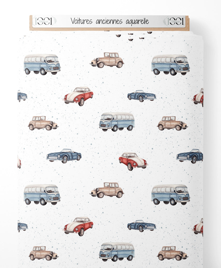 Tissu - Voitures anciennes aquarelle