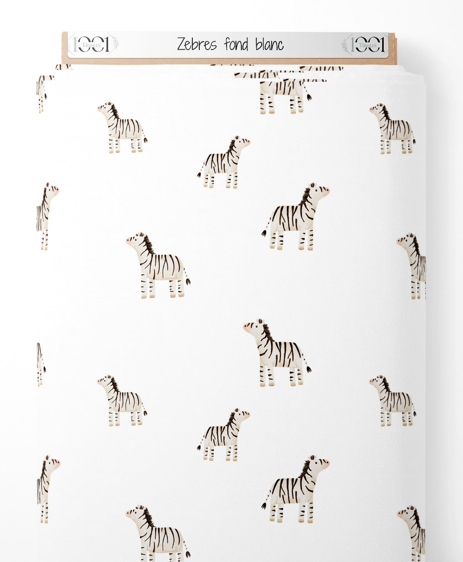 Les zèbres sont dessinés avec des rayures noires distinctes. Chaque zèbre est orienté dans différentes directions.Les tissus